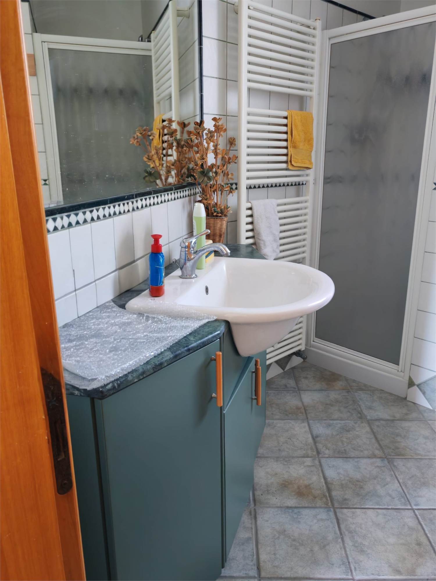 Al primo piano, invece, ci sono un altro soggiorno, una camera matrimoniale, una cameretta e un bagno.