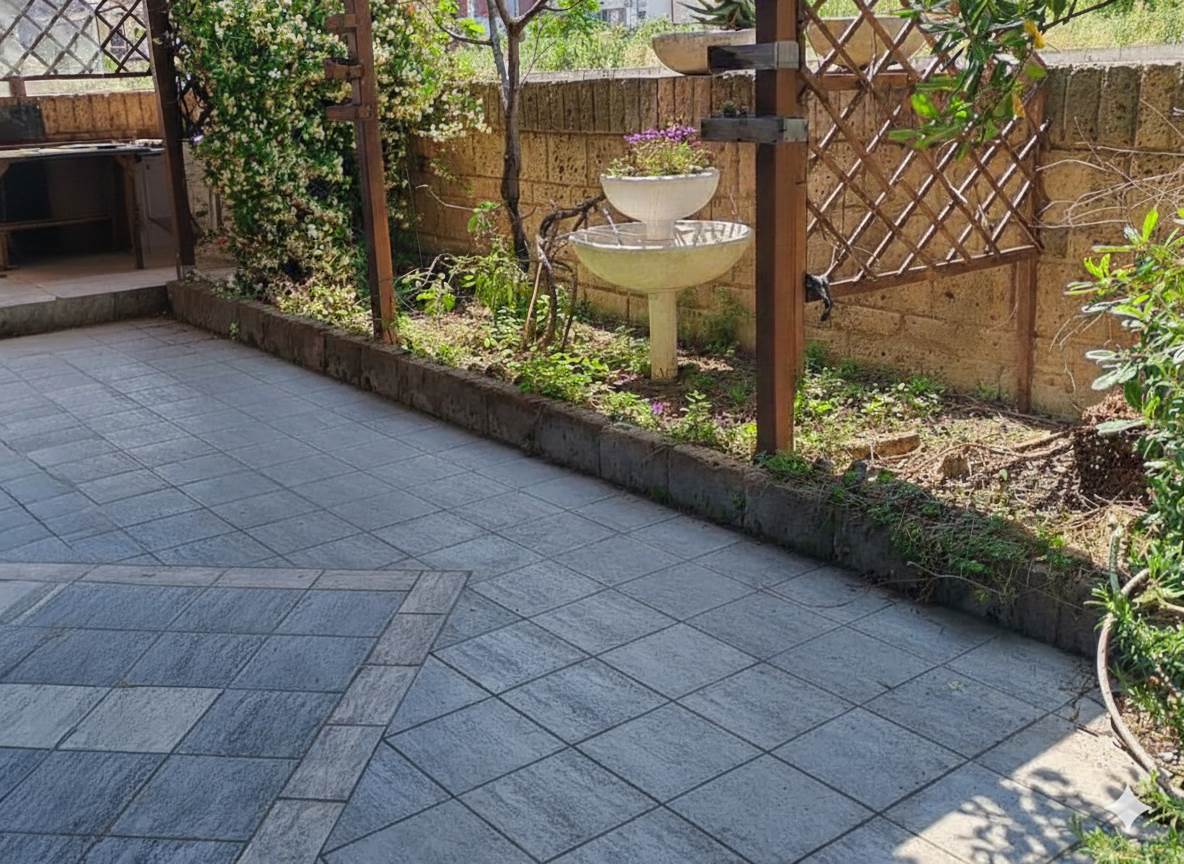 Al piano terra troviamo un accogliente soggiorno con angolo cottura, un bel giardino privato con camino perfetto per le serate estive e un ripostiglio esterno con punto d'acqua.