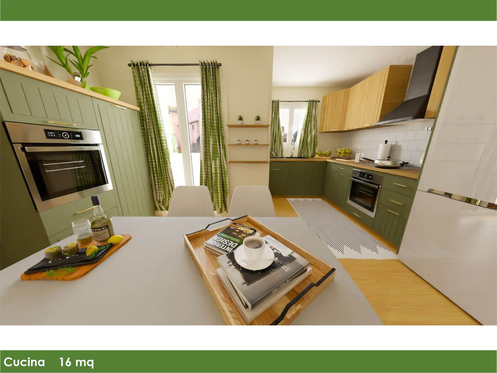 L'immobile è attualmente suddiviso in due trilocali distinti, ognuno composto da soggiorno con angolo cottura, due camere e bagno.