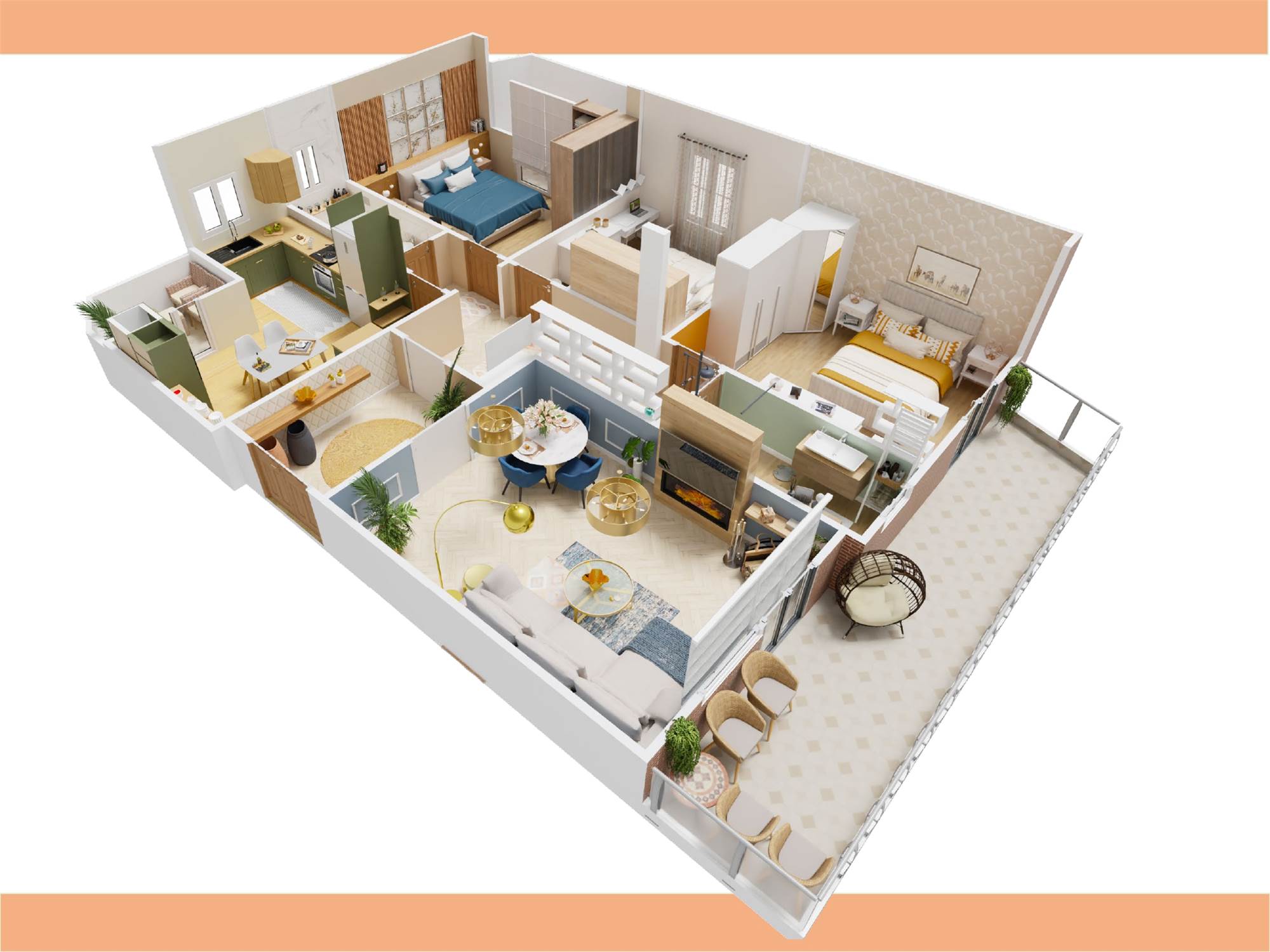 L'immobile è composto da tre camere da letto, un ampio soggiorno, cucina abitabile, due bagni, ripostiglio e balconi che servono i vari ambienti, garantendo luminosità e piacevoli affacci.