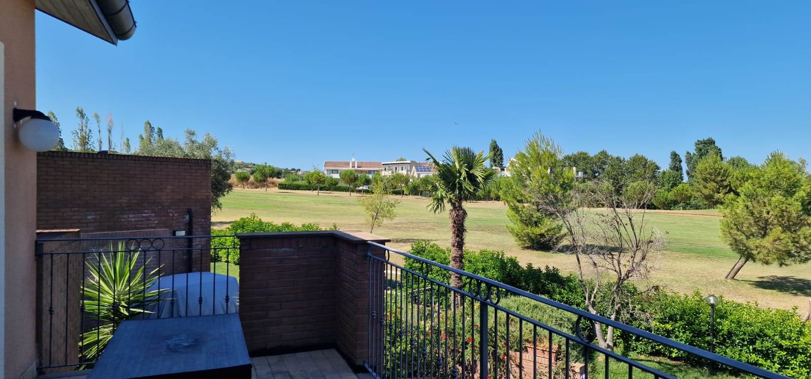 Completa la proprietà un terrazzo abitabile di circa 20 mq, con una splendida vista aperta sui curatissimi campi da golf, ideale per colazioni all’aperto, momenti di relax o cene estive in totale tranquillità.