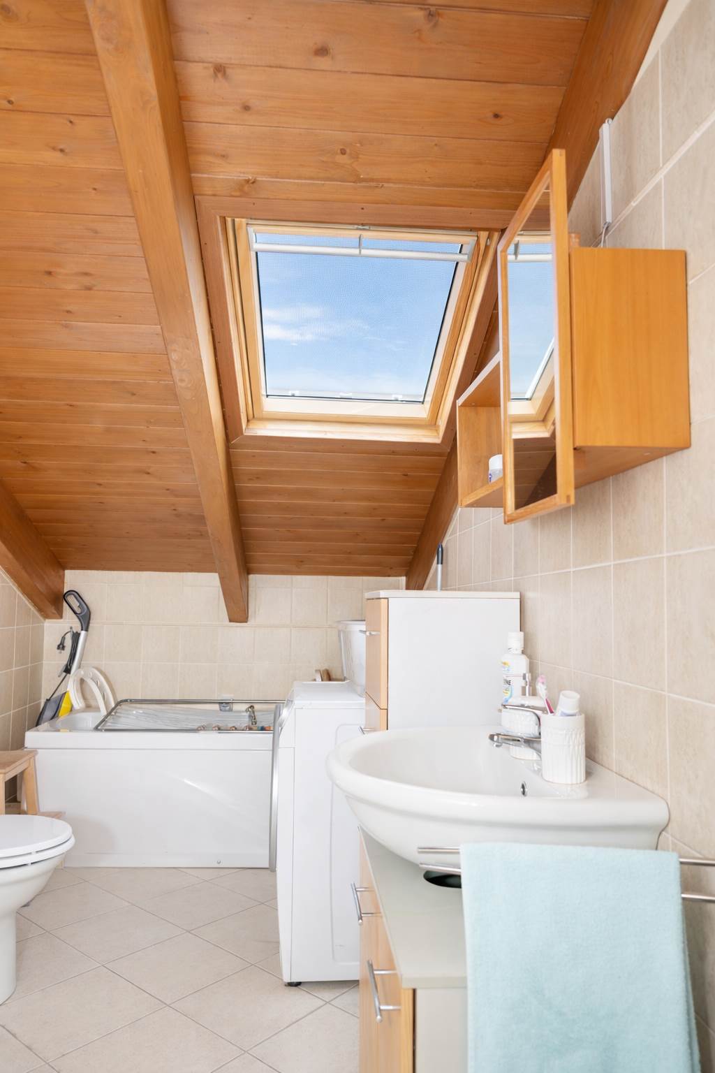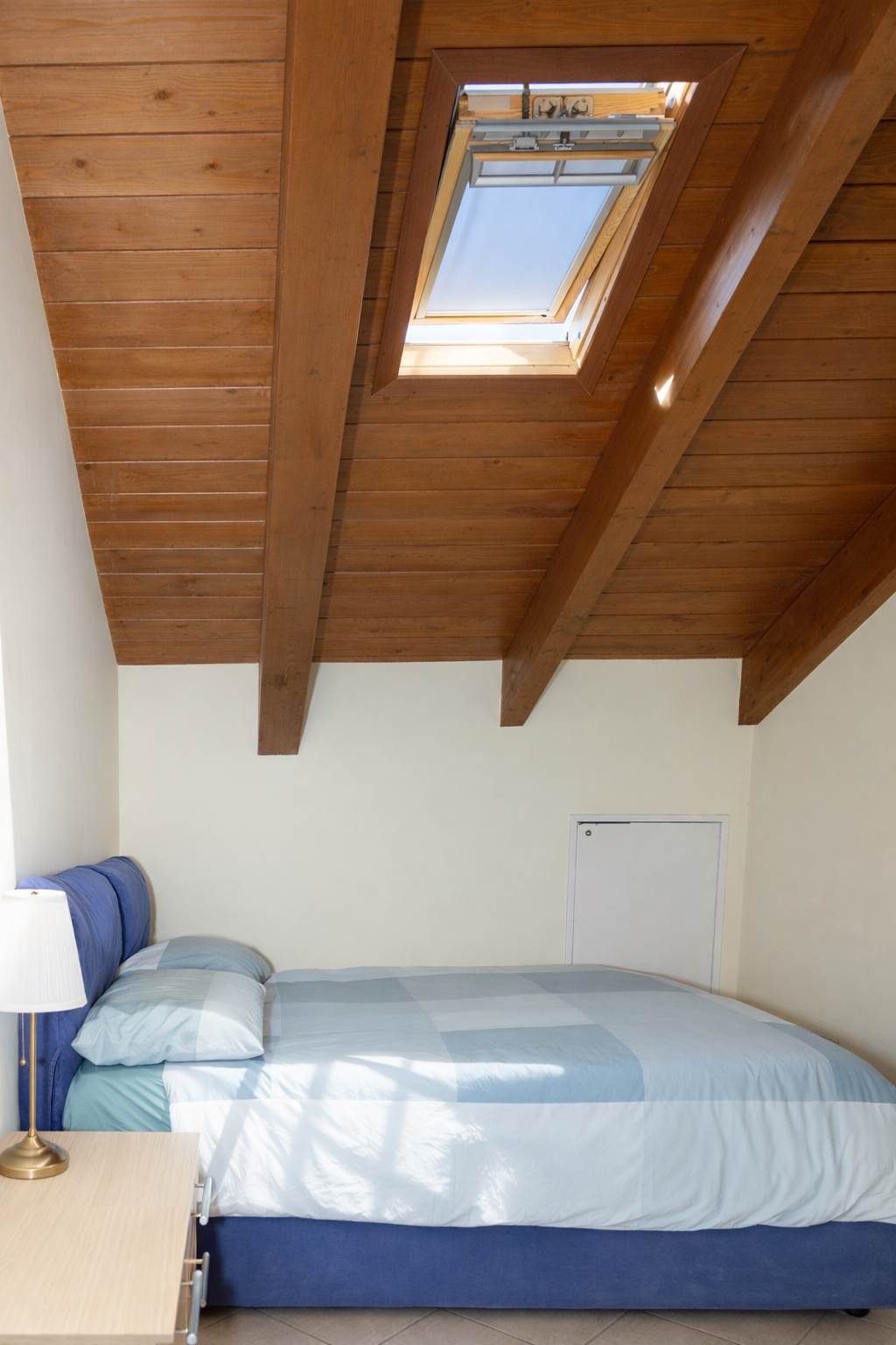 La zona notte ospita una camera matrimoniale con comodo ripostiglio e un bagno completo con vasca e doccia, pensato per offrire il massimo relax. Gli ambienti sono illuminati da lucernari elettrici situati nelle parti alte, che garantiscono luce naturale e privacy. La facciata esterna è stata completamente rifatta nel 2025.