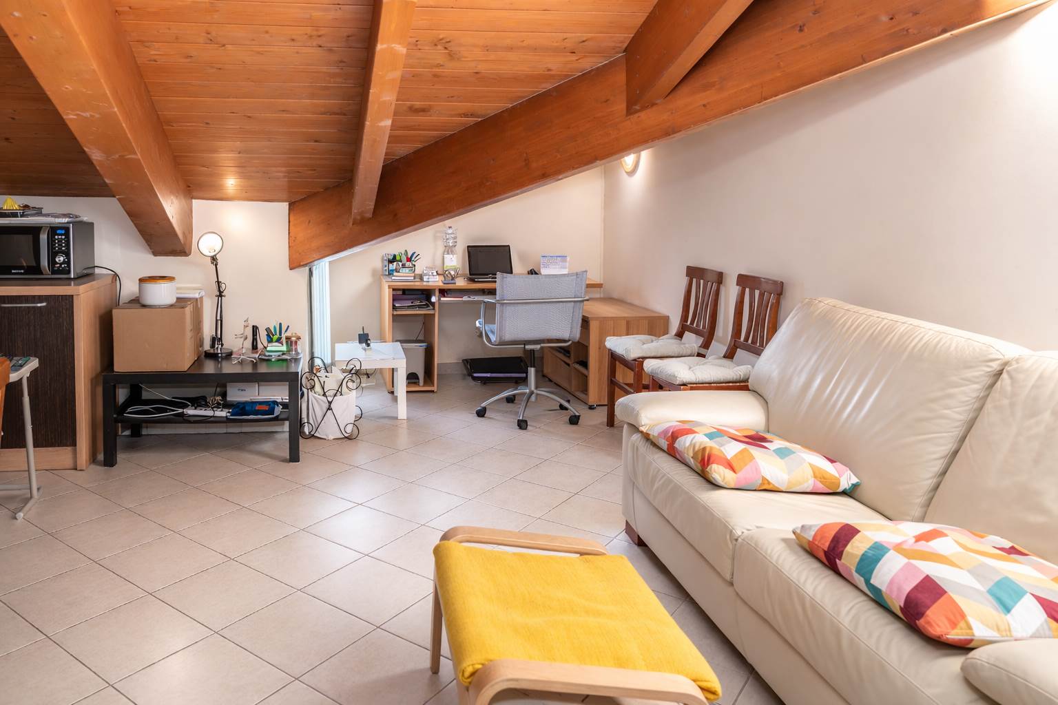 Nel centro di Sambuceto, vendiamo luminosa mansarda con travi a vista , perfetta per chi cerca comfort e praticità . L’immobile si apre su un ingresso accogliente che conduce a un soggiorno con angolo cottura, ideale per vivere momenti conviviali in piena comodità. Nella parte bassa del soggiorno è presente un pratico angolo studio, perfetto per smart working o per uno spazio creativo.